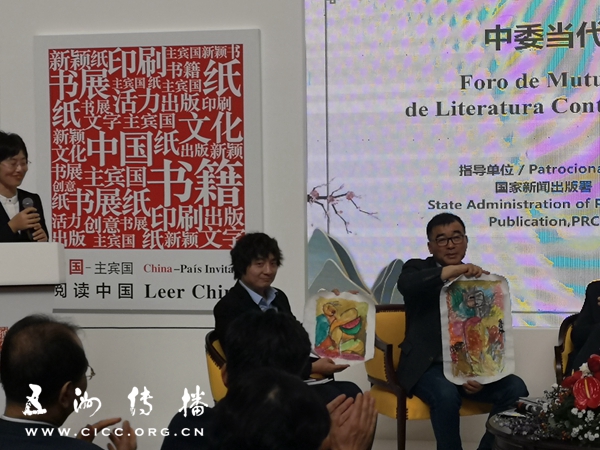 当地读者与蔡天新和阿乙互动,并向两位作家赠送诗集插画