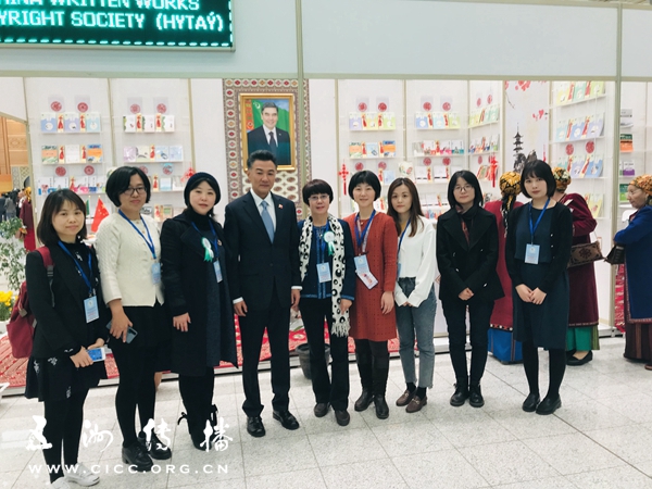 11月5日,驻土库曼斯坦大使孙炜东专门来到会场会见中国出版代表团并接受赠书,就中土双方出版及文化合作进行了深入交流。