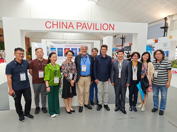 (拉罗谢尔市市长一行巡馆合影)“中国联合展台”向世界展现传播有品质、有温度、有情怀的推介项目和视听产品,不少纪录片首次面向国际机构进行展示。纪录片节目既有《生态澜湄》《大河之洲》《大泰山》《零碳之路》《众神之地》《我们的国家公园》等展示中国自然生态及绿色环保主题的节目,也有《色彩中国》《中国·考古》《京之轴》《徒步长城》《城子崖》《不止考古·我与三星堆》《中国创世神话》等反映中华优秀传统文化主题节目,还有《家园梦想》《行进中的中国》《深中通道》《中国奇妙之旅》《极致中国》《数智之道》《城市大脑》《未来漫游指南》等表现中国社会与科技发展主题节目和《丝路美食之探寻米踪》《味道中山II》《绥味人间》《寻味一把挂面》等中国美食节目。