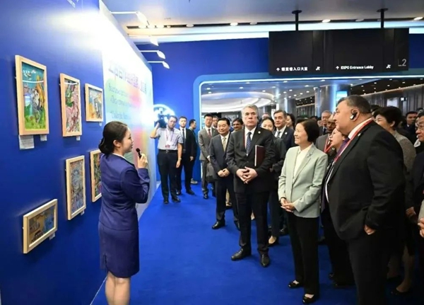 7月4日,“同一片蓝天下”上海合作组织国家儿童画展作为上合组织民间友好论坛暨友好城市论坛重要活动内容之一,在辽宁沈阳隆重揭幕。全国政协副主席、上海合作组织睦邻友好合作委员会主席沈跃跃及出席论坛的上合组织国家嘉宾共同巡展。