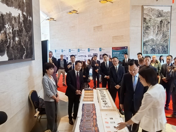 嘉宾共同观看西泠印社创作的《共话友谊岁月回响》主题长卷