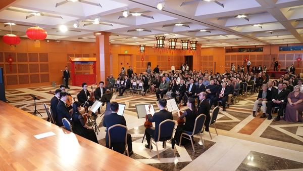 2025年8月27日,“感知中国—中美民间友好交响音乐故事会”在美国华盛顿中国驻美国大使馆成功举办。作为纪念世界反法西斯战争胜利80周年的重要民间交流活动,本次故事会以“共话友谊岁月回响”为主题,创新融合“交响音乐+沉浸式故事讲述+历史影像展”形式,将中美军民并肩抗击日本法西斯的峥嵘岁月娓娓道来,为深化两国民间友好搭建起跨越时空的情感桥梁。