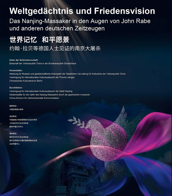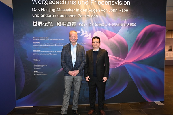 由中国国家文物局博物馆与社会文物司、江苏省对外文化交流协会、柏林中国文化中心主办,南京市对外文化交流协会、侵华日军南京大屠杀遇难同胞纪念馆、五洲传播中心承办的《世界记忆 和平愿景——约翰·拉贝等德国人士见证的南京大屠杀》主题展览于2025年11月19日至2026年1月15日在柏林中国文化中心进行二次展出,通过珍贵史料与互动体验,向德国公众传递历史的真相与和平的愿景。