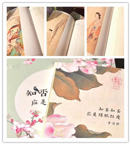 五洲传播出版社出品的“最美古诗词”系列古风手账之《李清照:知否知否 应是绿肥红瘦》,将李清照的词搜集起来,以春夏秋冬为主题,加精美古画精制而成。