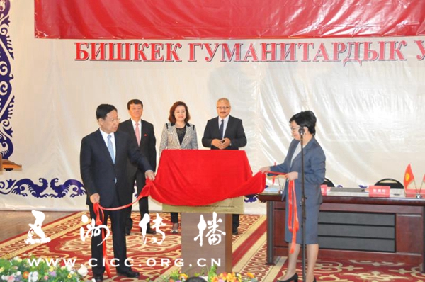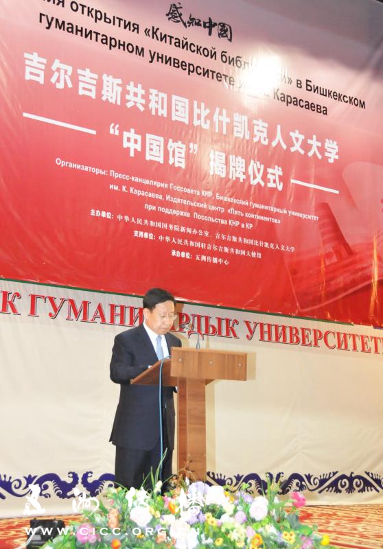 活动期间,在中宣部常务副部长王晓晖、中国驻吉尔吉斯共和国大使杜德文和吉尔吉斯斯坦教育部部长古丽米拉·库达伊别尔季耶娃的共同见证下,中国国务院新闻办公室对外推广局局长张雁彬同吉尔吉斯斯坦比什凯克人文大学校长穆萨耶夫·阿布杜拉达签署了“中国馆”共建协议,王晓晖、杜德文和古丽米拉·库达伊别尔季耶娃共同为比什凯克人文大学“中国馆”揭牌开馆。