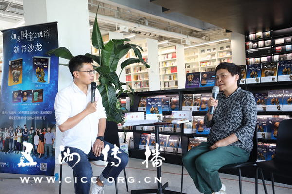 活动现场气氛热烈。纪录片《如果国宝会说话》央视主创团队分享了拍摄花絮、幕后故事,耳朵里的博物馆创始人朋朋哥哥主持并讲述了国宝背后的丰富知识,百余名热心读者参与活动。