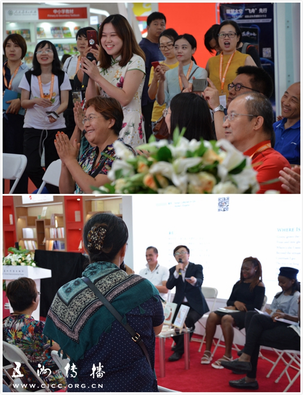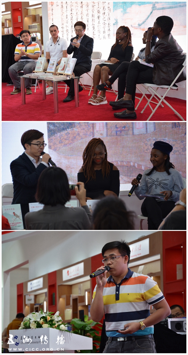 活动现场,分别来自加拿大、贝宁、菲律宾、肯尼亚的5位外国嘉宾与主持人、现场观众一起,分享了他们接触和学习中国文化尤其是中国诗歌的心得和体会。他们时而畅谈,时而朗诵,时而演唱,以多种语言、多种方式表达了对中国诗歌的喜爱和情感上的共鸣。来自贝宁的北京师范大学留学生艾力舍喜爱中国诗人李白,他激情澎湃的《将进酒》朗诵,使现场气氛达到高潮。活动吸引了场馆内众多观众驻足观看,还有现场观众即兴参与,这成为当日BIBF活动中的一个亮点。在这里,我们看到了世界不同文明的交流,看到了外国朋友学习中国文化的热情。