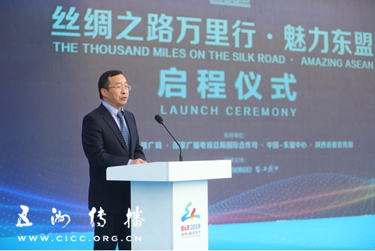 2019年10月18日上午,由中宣部对外推广局、国家广电总局国际合作司、中国-东盟中心、陕西省委宣传部共同指导,五洲传播中心与陕西广播电视台联合举办的大型跨国全媒体活动“2019丝绸之路万里行•魅力东盟”启程仪式在北京国家体育场北广场玲珑塔下举行。