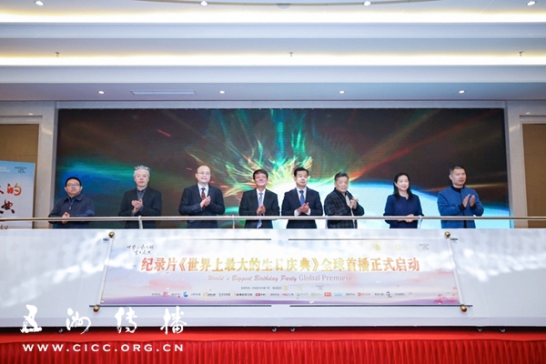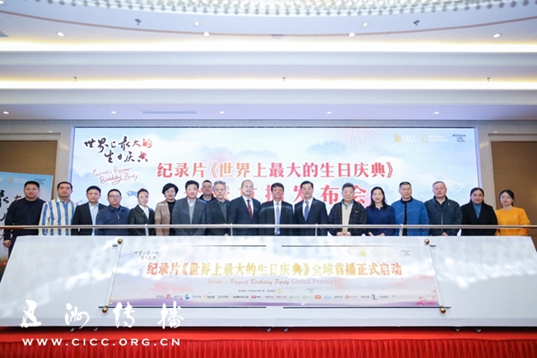 发布会现场,指导单位和制作机构领导和与会嘉宾们共同上台开启了纪录片《世界上最大的生日庆典》全球播映计划。此次,纪录片《世界上最大的生日庆典》将以“国家地理与央视领衔,卫视联动,头部新媒体视听平台集中上线”的方式播出,实现国内外全媒体同步传播。