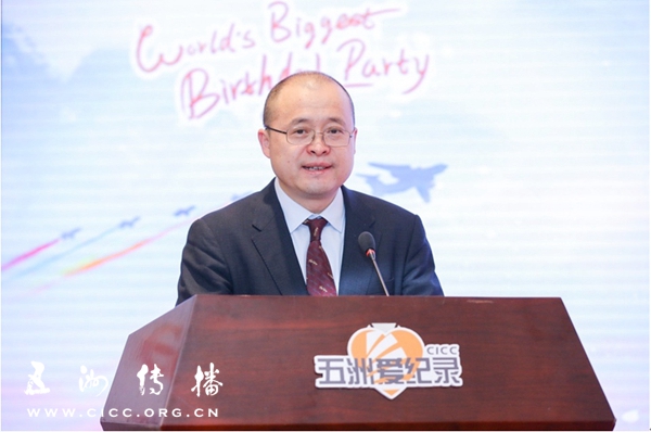 中宣部对外推广局局长张雁彬在致辞中表示,过去一段时间来,全国各地和各族儿女举办了一系列精彩生动、活泼热烈的庆祝活动,为新中国70周年华诞献礼,不仅凝聚了全体中华儿女的爱国之心,也在国际社会引发了热烈反响。他希望,通过播出《世界上最大的生日庆典》把新时代中国的崭新面貌和中国人民的欢乐喜悦之情生动地传递给世界观众。他呼吁国外媒体、影视机构今后与中方不断深化合作,携手打造更多影视精品,增进中外理解,沟通中外民心,为构建人类命运共同体广泛凝聚民意基础。