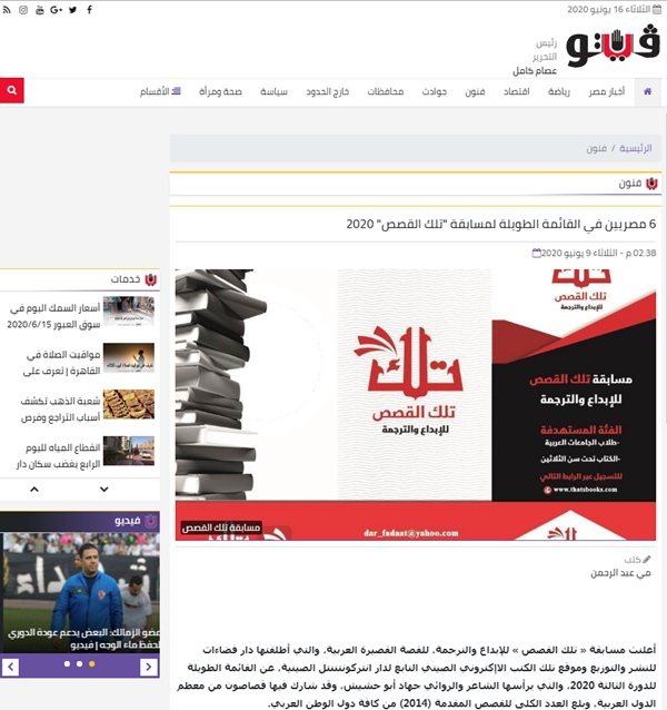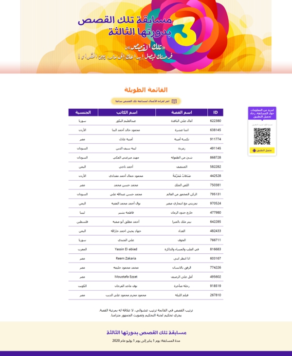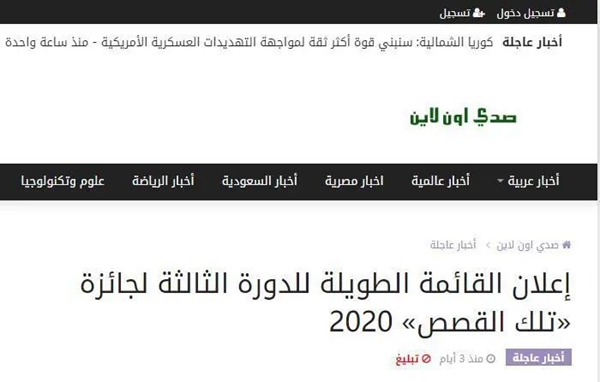 that’s books阿拉伯网络小说创作大赛是面向35岁以下年轻的阿拉伯文学创作爱好者的年度性国际比赛,它是阿拉伯地区唯一一个通过网络征稿,网友参与评选与专家评选相结合的文学创作比赛,今年是第三年举办。前两届创作大赛的获奖者大多数是大学老师、文学博士或者硕士。每年9月将确定创作大赛颁奖典礼的时间和地点,届时将邀请获奖选手到现场参加颁奖典礼颁发奖品及证书。入围短名单的作品将在约旦空间出版社出版纸质图书,并在约旦阿拉伯作家见面会上举行首发仪式,获奖选手还将亲自录制获奖作品的音频书并在that’s阿语数字阅读平台تلك الكتب (www.thatsbooks.com)出版。2018年创作大赛收到14个国家的2217篇投稿,颁奖仪式在黎巴嫩贝鲁特举行;2019年收到13个国家的2465篇投稿,颁奖仪式在阿联酋沙迦举行,每届活动覆盖人数近400万。