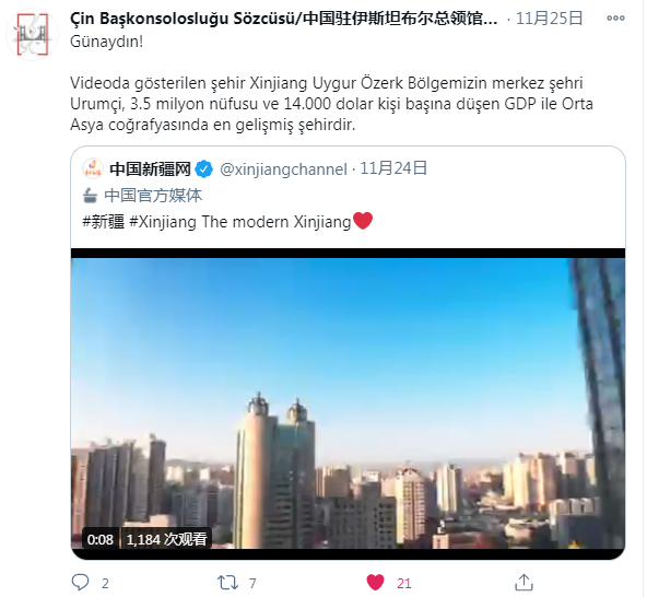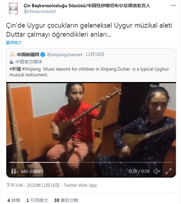 近日,前方使领馆同志给网站工作人员发来信息说:“中国新疆网特别好使,特别棒!有推特还有油管(优兔),我们的信息已经在推特上挂出来了!”“中国新疆网的很多视频、照片都非常好!”“中国新疆网推特官方账号的信息比较权威,也很接地气,我们拿过来翻译成法语发布,效果很好。”截至目前,已有20家中国驻外使领馆和10多位驻外大使关注中国新疆网推特账号,并与网站工作人员进行了积极的互动。