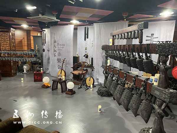 图为冯满天工作室陈列的中国古典乐器。