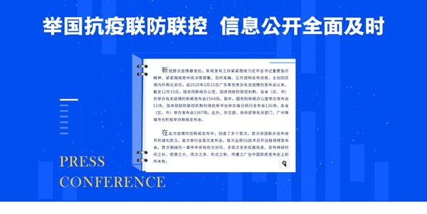 2020年初,突如其来的新冠疫情打乱了人们前进的步伐。国新网在做好新闻发布工作的同时,配合党和国家宣传工作,围绕抗疫新闻发布活动,制作《举国抗疫联防联控 信息公开全面及时》大型原创专题。