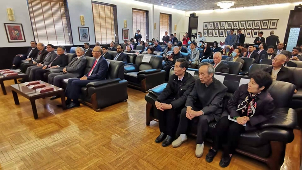 中巴友协会长沙祖康大使(右3)和五洲传播出版社副社长荆孝敏等合影/摄影 杜辉煌