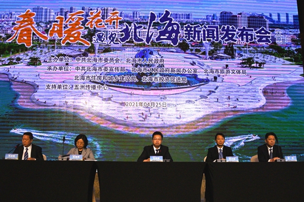 刘伯贤还真诚地向社会各界发出邀约,欢迎国内外各界朋友去北海旅游度假、投资置业,拥抱大海的浪漫与壮美。他说:“北海目前已进入了高质量发展的快车道,发展前景广阔。北海是中国首批沿海开放城市、中国首批优秀旅游城市、首批‘中国避寒宜居地’,也是国家历史文化名城、国家园林城市、国家卫生城市。北海既有三面环海、天蓝水碧的自然生态,也有历史悠久、风物清嘉的人文积淀,还有深受投资者认可的营商环境……”