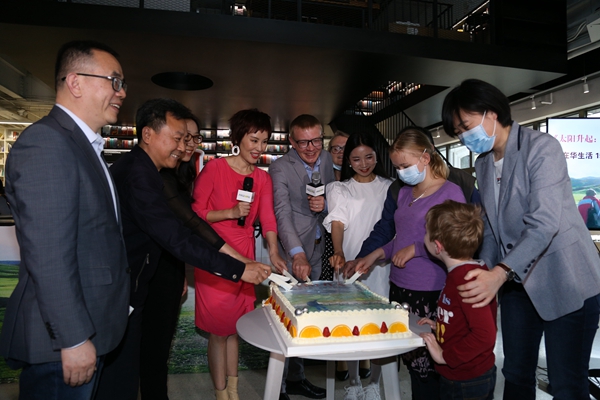 Erik与嘉宾一同切本书封面图案的蛋糕