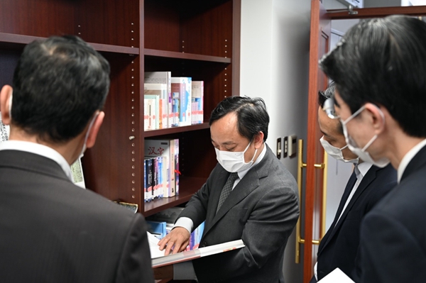 会见结束之后,在梶浦伸作先生的陪同下参观创价大学校园时,我们巧遇创价大学副校长兼北京事务所所长神立孝一,他热情地告诉我们,中国馆的设立意义重大,创价大学每年都会带刚入学的新生参观校园,而中国馆就是其中重要的一站。日本学生们震惊于馆藏中国图书的丰富与其中所描述的现代中国社会。“希望中国馆可以成为更多的日本学生了解中国、不断地加深对中国的理解的窗口。”
