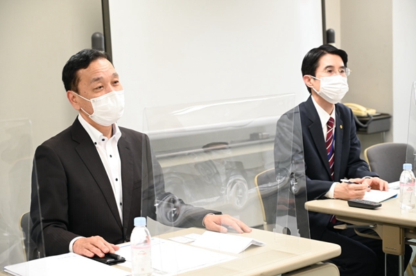 创价大学位于东京郊外八王子,时值初夏,校园内郁郁葱葱。我们走进中央图书馆4层,宽敞的阅览大厅出现在我们面前。尽管东京仍处于新冠疫情高峰期,大厅还有一些学生在边查阅图书边在电脑上书写着什么。创价大学国际部副部长兼北京事务所事务长川上喜彦、课长藤本英一、副课长横田地秒一行早早就在等候。他们热情地带我们参观中国馆。