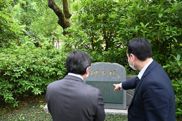 我们还参观了创价大学教学楼以及“周樱”、“周夫妇樱”、“中日友好纪念碑”等具有重要意义的地点,了解这些设施的建立过程。梶浦伸作表示,池田大作名誉会长始终倡导日中友好,曾于1968年9月8日在一万多名大学生面前首次提出《日中邦交正常化倡言》,有力地推动了中日邦交正常化,他为日中友好不遗余力的精神值得我们大力弘扬。