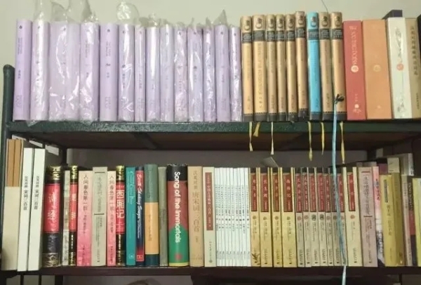 书架上那套淡紫色的图书就是“许译中国经典诗文集”