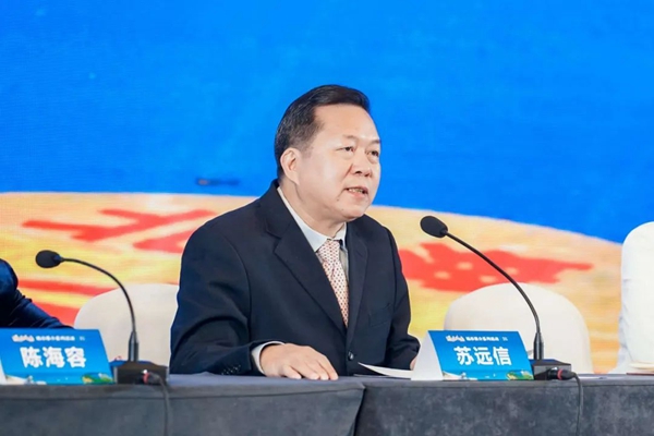 北海市委宣传部常务副部长、市政府新闻办主任(兼)苏远信介绍北海发展情况(北海市委宣传部 供图)