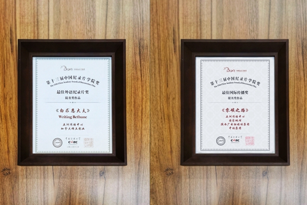 2023年12月29日晚,第十三届“光影纪年”——中国纪录片学院奖颁奖盛典在京举行,由五洲传播中心与加拿大稀土影业联合制作的三集系列纪录片《白求恩大夫》荣获“最佳历史文献纪录片奖”和“最佳外语纪录片奖”提名。