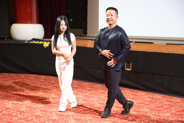 为了让留学生们更深入地体验京剧文化的魅力,分享会特别设置了京剧互动体验环节,寓教于乐。在专业老师的指导下,留学生们兴致勃勃地尝试穿戴京剧服饰,学习基础唱腔和身段表演,并在舞台上以游戏形式理解京剧动作,在中秋佳节的浪漫氛围下演绎才子佳人月下初遇的情景故事,感受中国传统艺术的博大精深。
