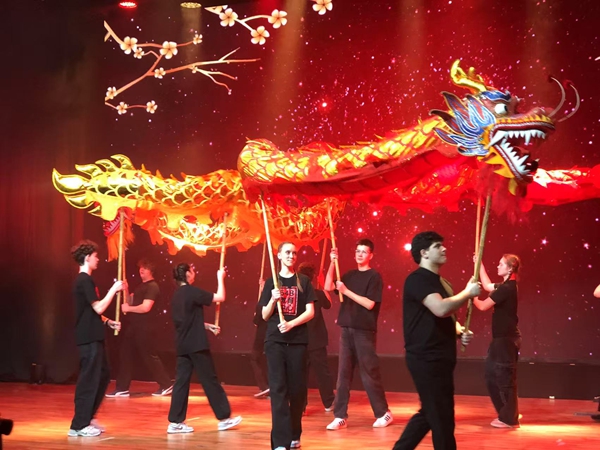 活动现场,来自548中学的汉语学习者进行了精彩纷呈的才艺展示。在“有熊猫”中国春节游园会浓厚的春节气氛中,中文歌曲演唱、中国传统舞蹈、舞龙舞狮、杂技与武术表演、书法展示等节目轮番上演,年轻学子们用流利的汉语表达对中国文化的理解。