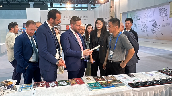会展期间,向国内外参展观众推出200余种精品多语种系列图书和主题文创,包括《如果国宝会说话》、《从长安到罗马》、《行走的北京中轴线》等,并进行同步网络直播,广受好评和追捧,展台现场国内外游客络绎不绝、气氛热烈。