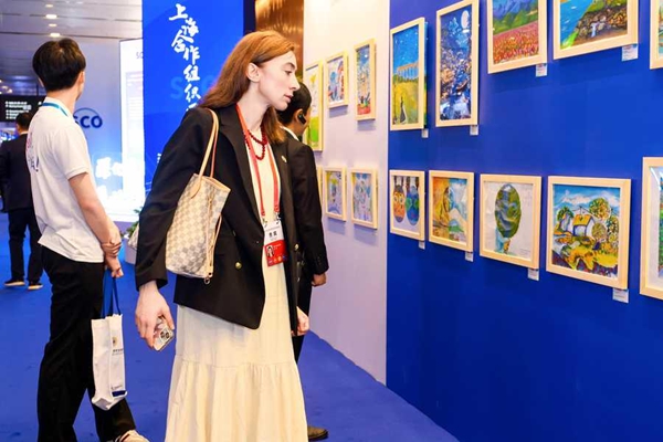 作为中国担任上合组织轮值主席国重要人文交流活动,本次画展紧扣2025年上合组织可持续发展年主题,共展出13个上合组织国家儿童的百余幅美术作品。画作围绕多彩文化、未来科技、欢庆丰收、绿色环保、美丽地球、珍爱和平6个主题,跨越语言和国界,构成了一幅绚丽多彩的上合组织人文画卷,充分展现了上合组织各国地域文化特色、儿童独特的艺术视角以及对“和平”、“发展”、“环保”等问题的思考。