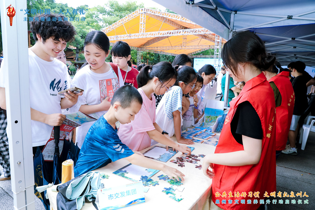 走文明飞行棋、挑战文明旅游拼图、参加环境保护有奖问答…近日,泉州府文庙广场热闹非凡,500多名市民、游客在宣传市集中体验文明之旅,在趣味闯关中提升文明素养。