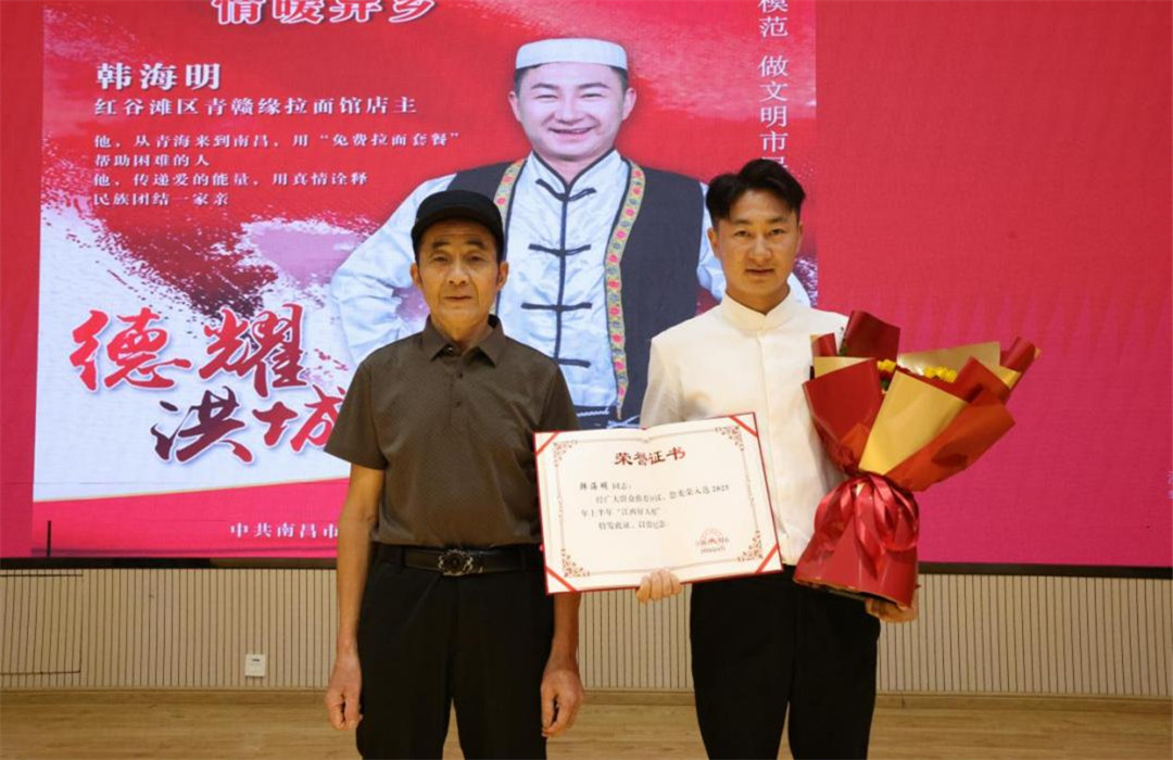 活动现场,全国道德模范万佐成为“江西好人”韩海明颁发好人证书,韩海明宣读《爱我英雄城 见我文明行——致全体南昌市民的文明倡议书》,倡导大家在日常生活中努力践行文明倡议书,让文明行为蔚然成风。“中国好人”蒙邦雷现场讲述自己的奋斗经历,弘扬好人文化,树立奋发向上、崇德向善的鲜明价值导向。