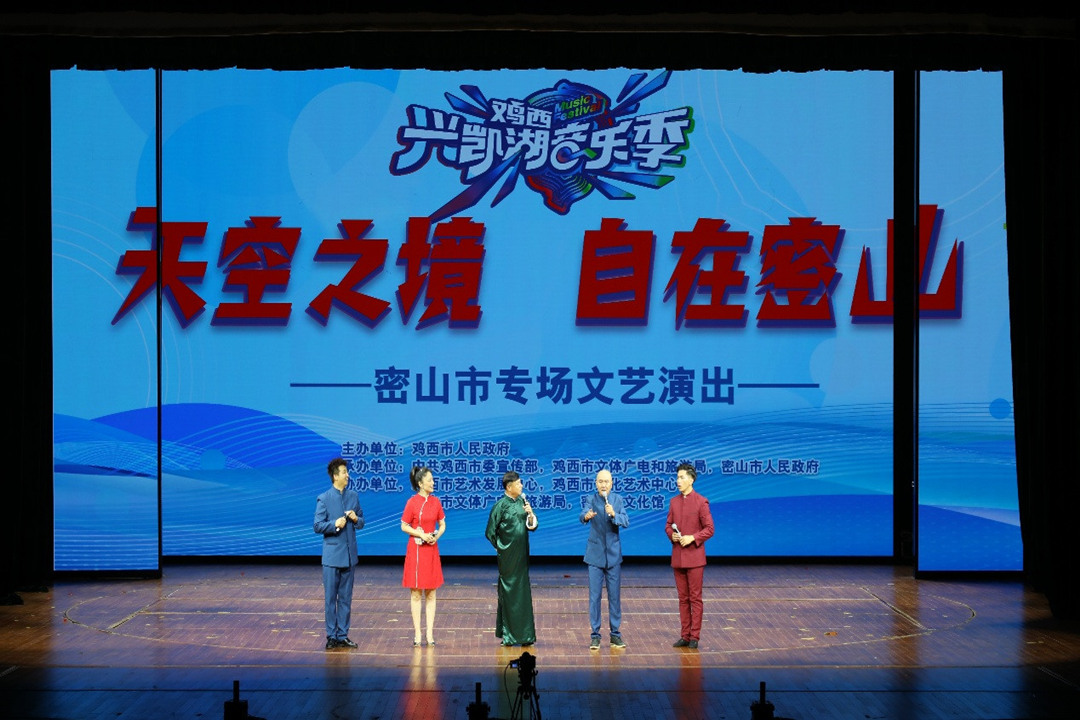 原创群口相声《密山等你来》通过幽默风趣的语言和生动形象的表演,向观众展示了密山的好山好水好风光以及丰富的特色美食,吸引了众多观众的目光,赢得了阵阵喝彩和掌声。演出将“文明中国·人人有礼”十大行动融入到表演中,用寓教于乐的形式把文明的种子播种在鸡西大地。