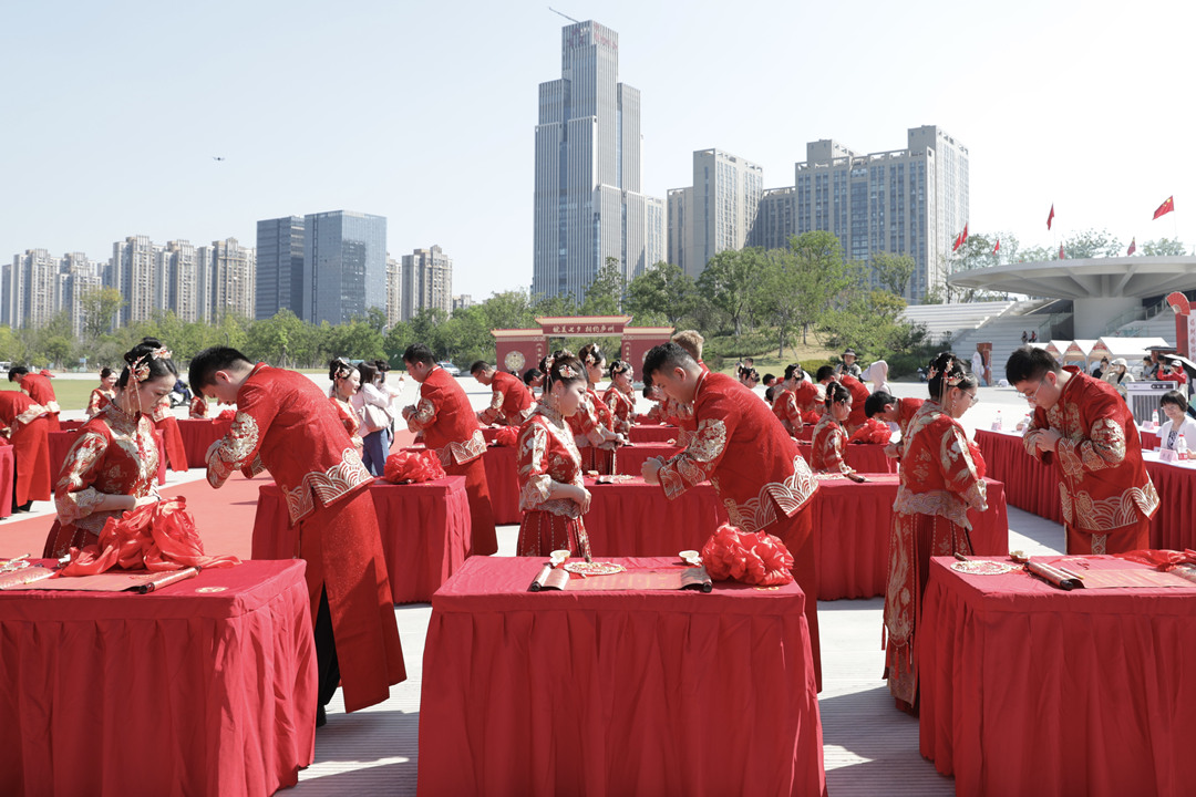 活动现场,文艺展演、婚礼仪式、诗词打卡、倡议签名等环节内容丰富,形式新颖,为市民呈现了一场融集体婚礼、戏曲演出、作品展示、互动体验于一体的文化盛宴。