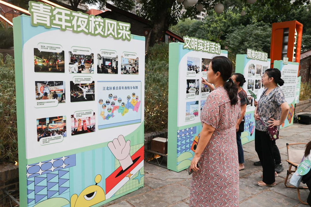 从文明展览到思想宣讲,从政企签约到多元互动,每一个环节都紧扣“春风满巴渝”社会风气提升行动之“奋斗有我”主题,也是“文明中国·人人有礼”江北在行动的生动实践。夏夜终会结束,但文明的航程永不停歇。“文明月月行 江北日日新”文明实践品牌活动还将持续开展,让文明成为江北市民行之不觉的生活习惯和共同践行的社会风尚,为建设中国式现代化重庆先行示范区注入源源不断的精神和文化力量。