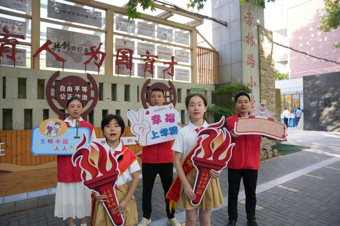 “人人有礼”,护送平安上学路。河南省洛阳市的“幸福上学路”文明护航行动通过部门联动、社会协同和全民参与,将文明出行的礼仪融入日常,让安全守护与文明礼让相辅相成,共同营造和谐有序的城市氛围,传递“人人有礼、人人受益”的文明新风尚。