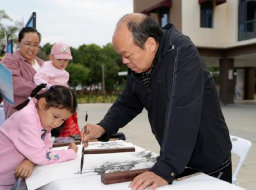文联老师指导小朋友写家风家训。银川市委宣传部供图