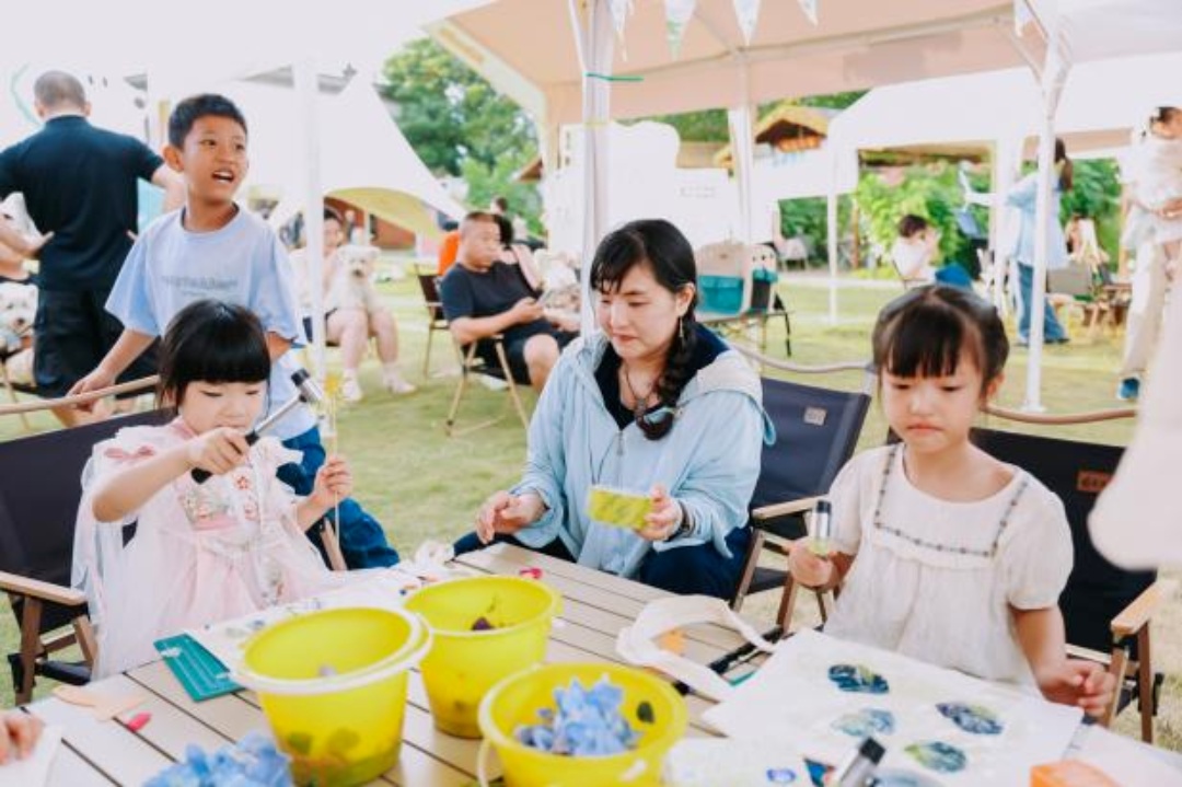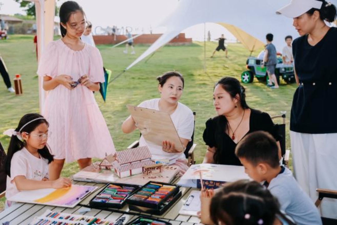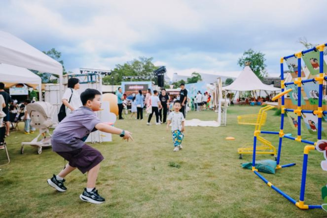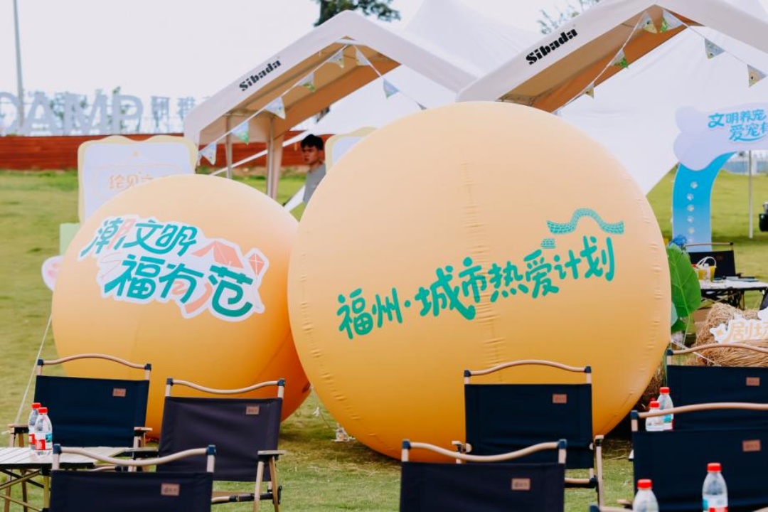 众多家庭在“无痕露营”区参与趣味互动游戏。福州市委文明办供图