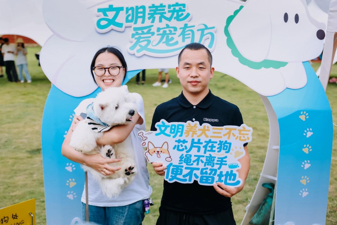 宠物主人在文明养宠互动角践行“宠爱有方”理念。福州市委文明办供图
