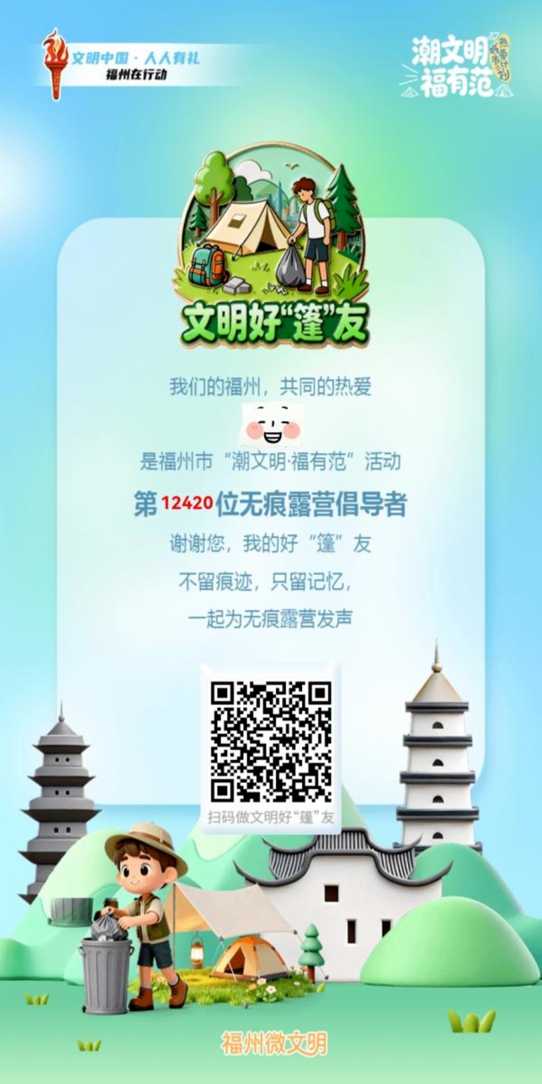 转发+1+1+1……万人云露营、齐文明!随活动同步上线的“我的文明好‘篷’友”线上游戏,成为线上传播无痕露营理念的重要载体。截至目前,共有12420位无痕露营倡导者为无痕露营发声,不少人将倡议书转发至朋友圈,一起为城市文明助力。