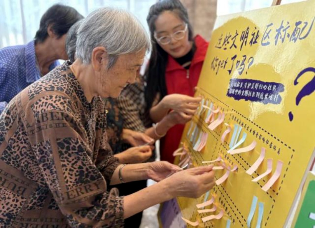 居民纷纷驻足观看、积极参与,结合自身经历践行文明认同。有居民在“邻里互助解难题”栏目下贴标签并分享邻里帮助老人的暖心事迹。此外,大家还提出了很多宝贵建议,切实推动了社区文明公约从单向传递向双向共建转变,增强了社区居民的参与感和归属感。