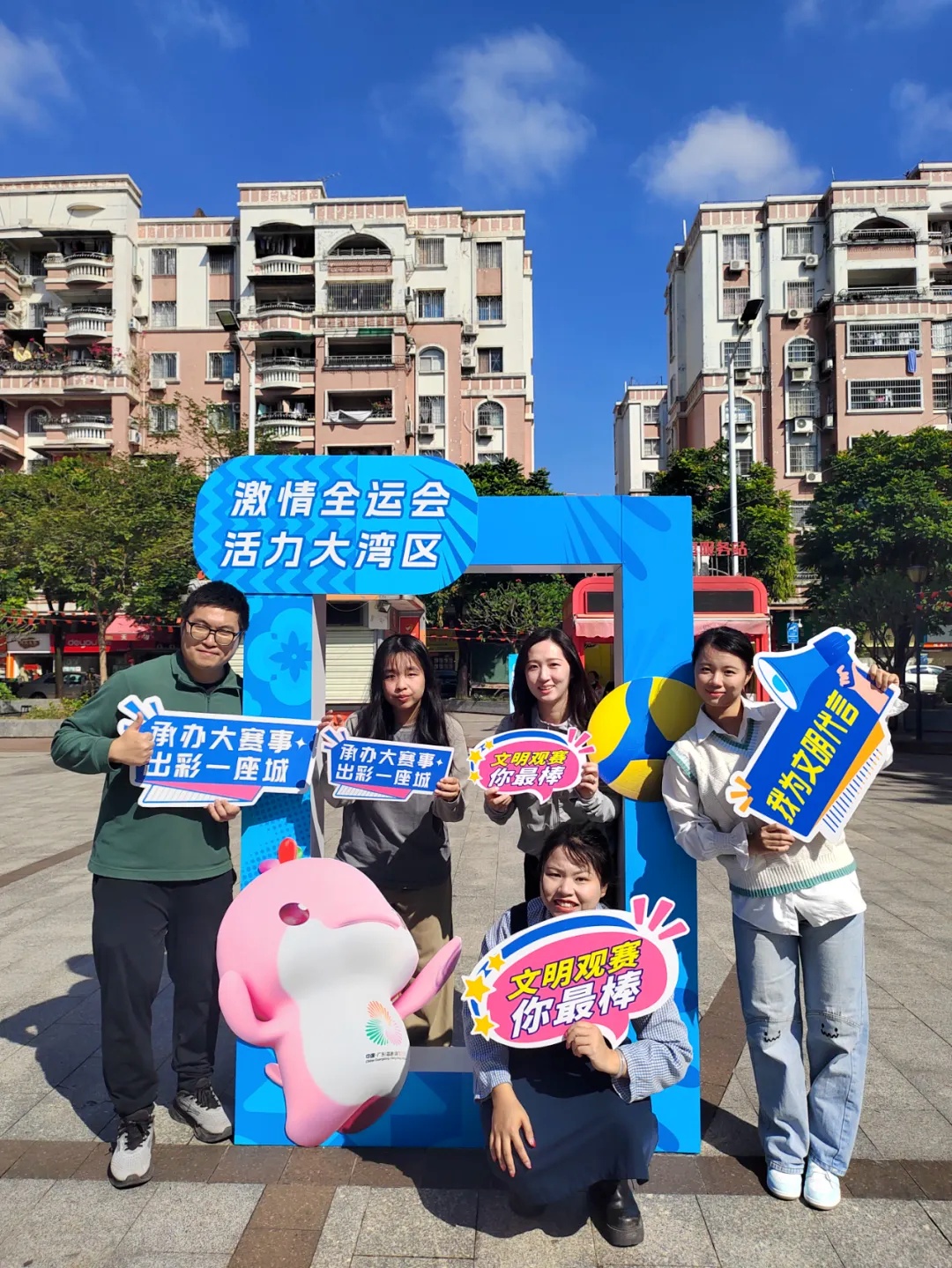 互动合影区精心设置了具有全运元素的创意合影框和一批如“文明观赛,你最棒”“我为文明代言”等创意手举牌,这些互动道具成为了文明观赛的移动宣传点,吸引了众多市民驻足拍照留念。